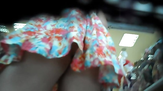 Cutie demonstrates her posterior in an upskirt down half-shirt style