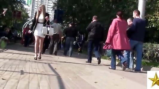 Magnificent woman in a brief miniskirt, no panties upskirts