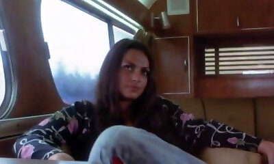 Breath taking brunette chick pummels with her lover in car