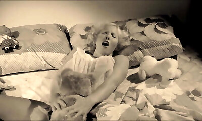 Sexy blonde Milf fucks her stilettos in vintage nylons lingerie