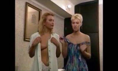 Two super-hot German sluts sharing a dildo and a loaded dinky in the office