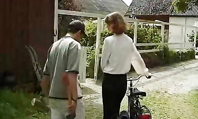 Vintage looking brown-haired maid serves her landlord with blowjob