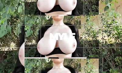 A supah busty German brunette gets her muff hammered outdoors