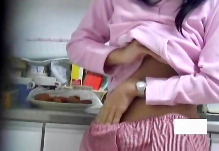 Asian gets masturbation orgasm on the kitchen floor