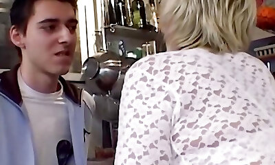 An old German granny gets her cock-squeezing holes smashed