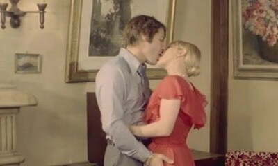 Two busty and mischievous German ladies sharing 2 hard peckers in the living room