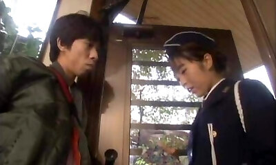 Brunette housemaid with hairy cooter having hookup with a plumber